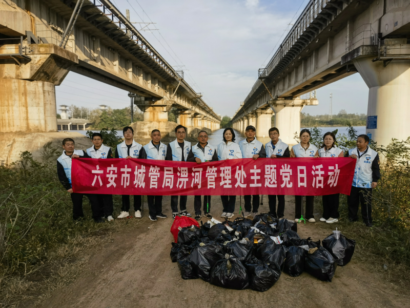 六安市淠河管理处开展“捡拾垃圾 清洁河堤”主题党日活动 党员带头守护淠河水清岸绿