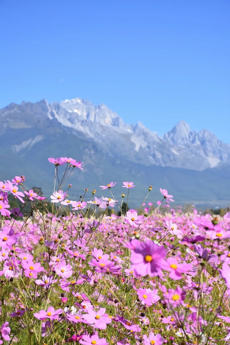 这片363.2亩的花海,在玉龙雪山脚下绚烂绽放,犹如一幅流动的秋日画卷。每一朵花都像是自然的精灵,在微风中与光共舞。