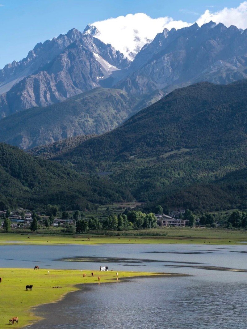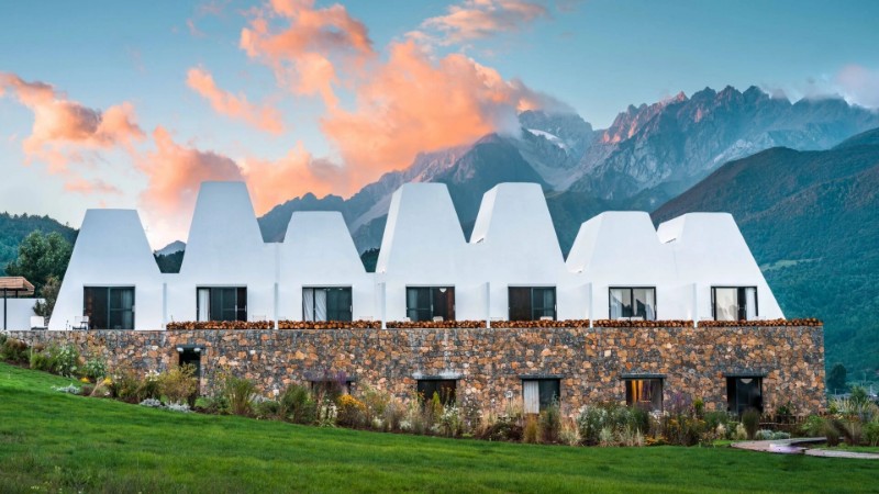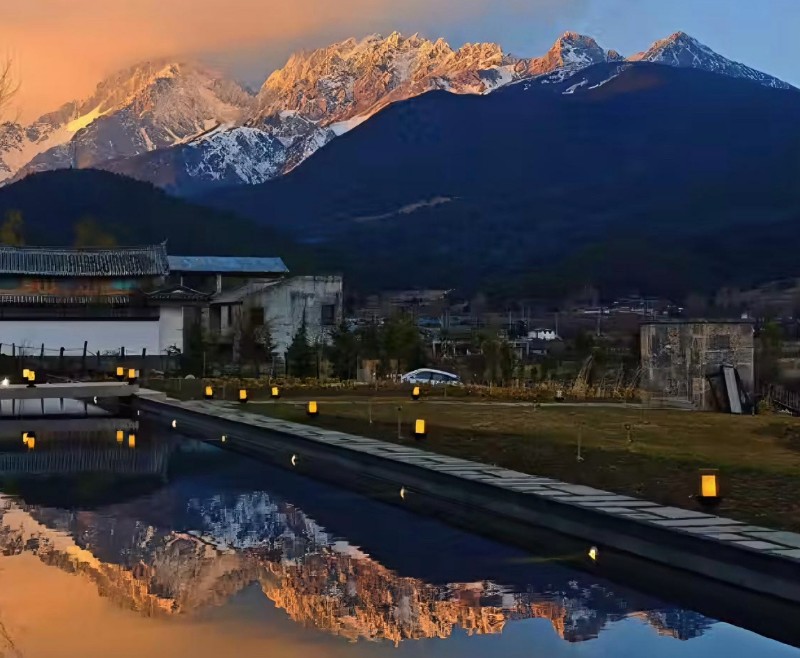 酒店依山傍水,坐拥观赏玉龙雪山的绝佳视角。酒店建筑风格清雅温馨,以原木、石材打造出的休闲空间别具一格;客房推窗可见“日照金山”,还可以通过开放式庭院与露台感受雪山光影的变幻。酒店负责人说:“我们不想做传统的观光酒店,而是要打造一个能让人们真正放松身心、融入自然山水的立体空间。让游客在享受现代居所舒适性的同时,感受大自然的生机之美和传统文化的魅力。”