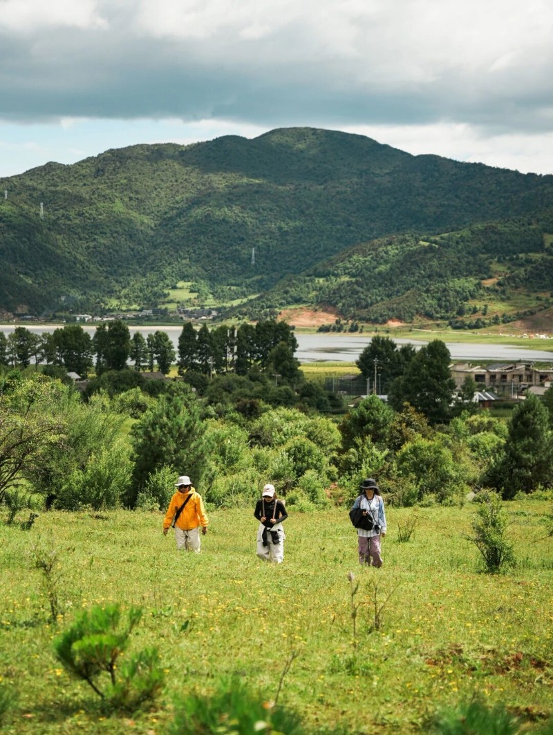 对于久居城市的游客而言,他们更渴望通过一场旅行,实现心灵与自然的深度联结。在文海村,游客尽情享受着慢时光,体验丰富多彩的民俗活动:早晨可以骑马环湖,看“日照金山”在湖面的倒影;午后可以徒步采野生菌,或在院子里煮茶小憩;傍晚可以学做扎染,学写东巴象形文字,体验纳西族歌舞的灵动与炽热;入夜则可以观星河,沉醉于璀璨星空。